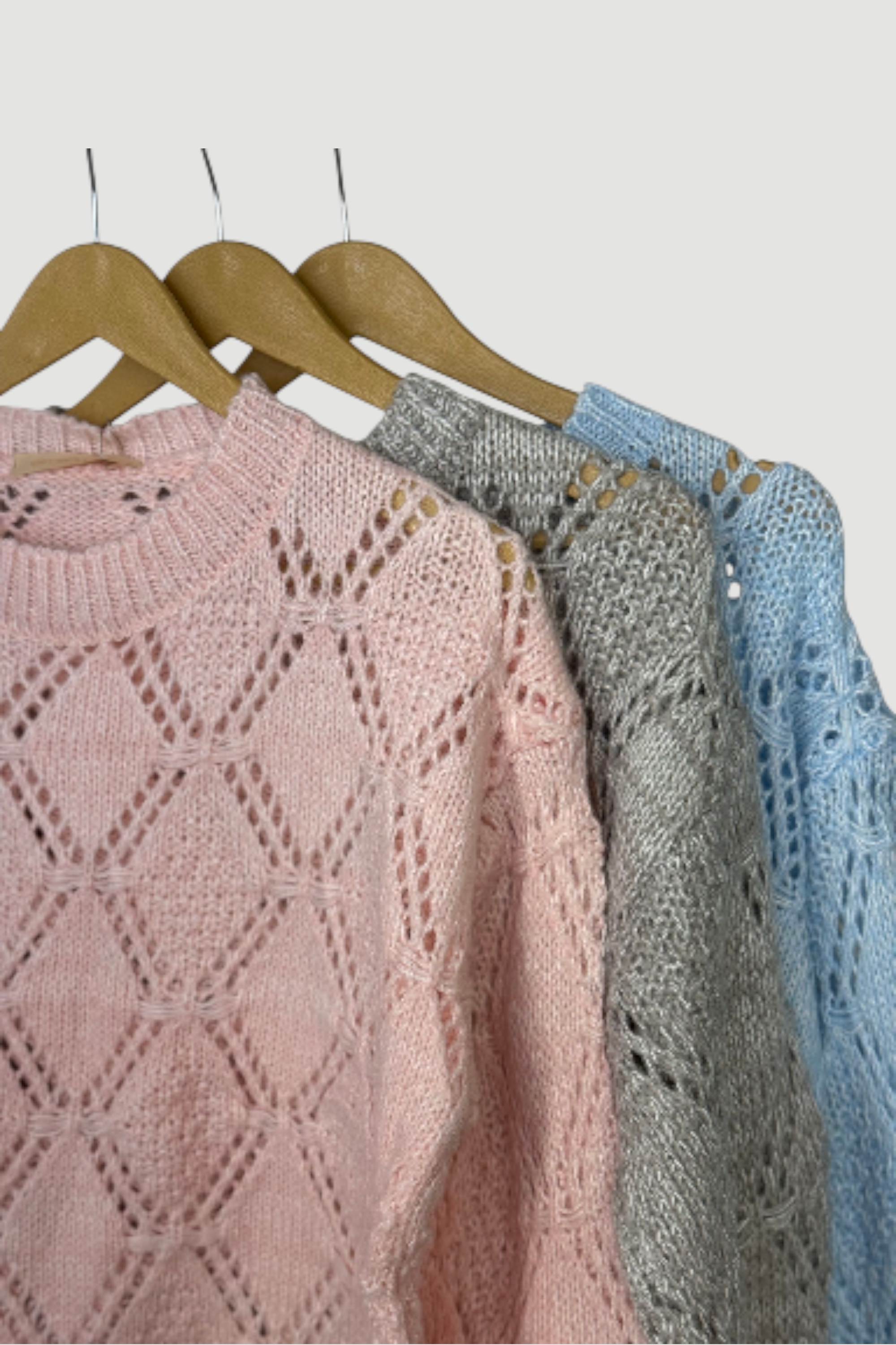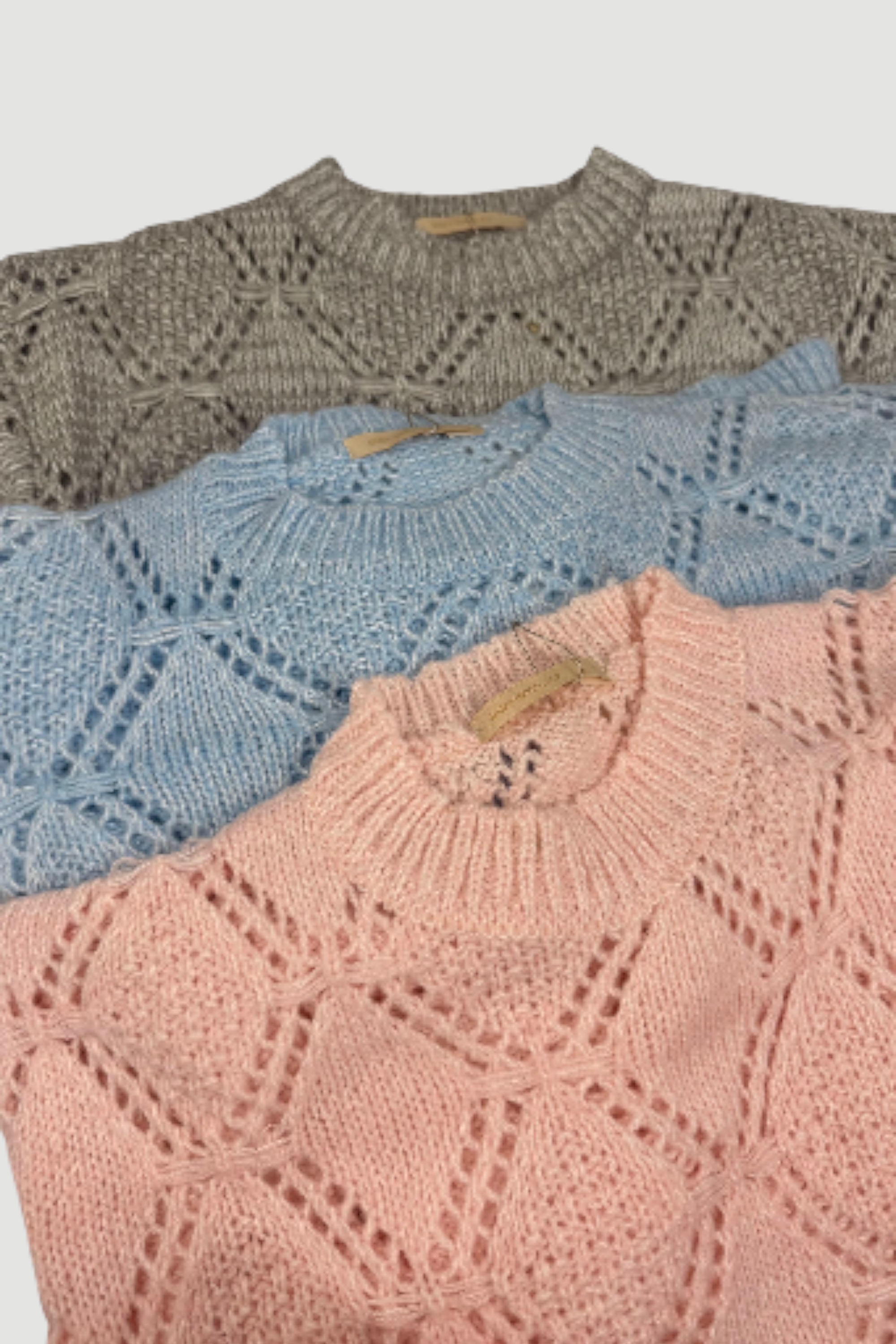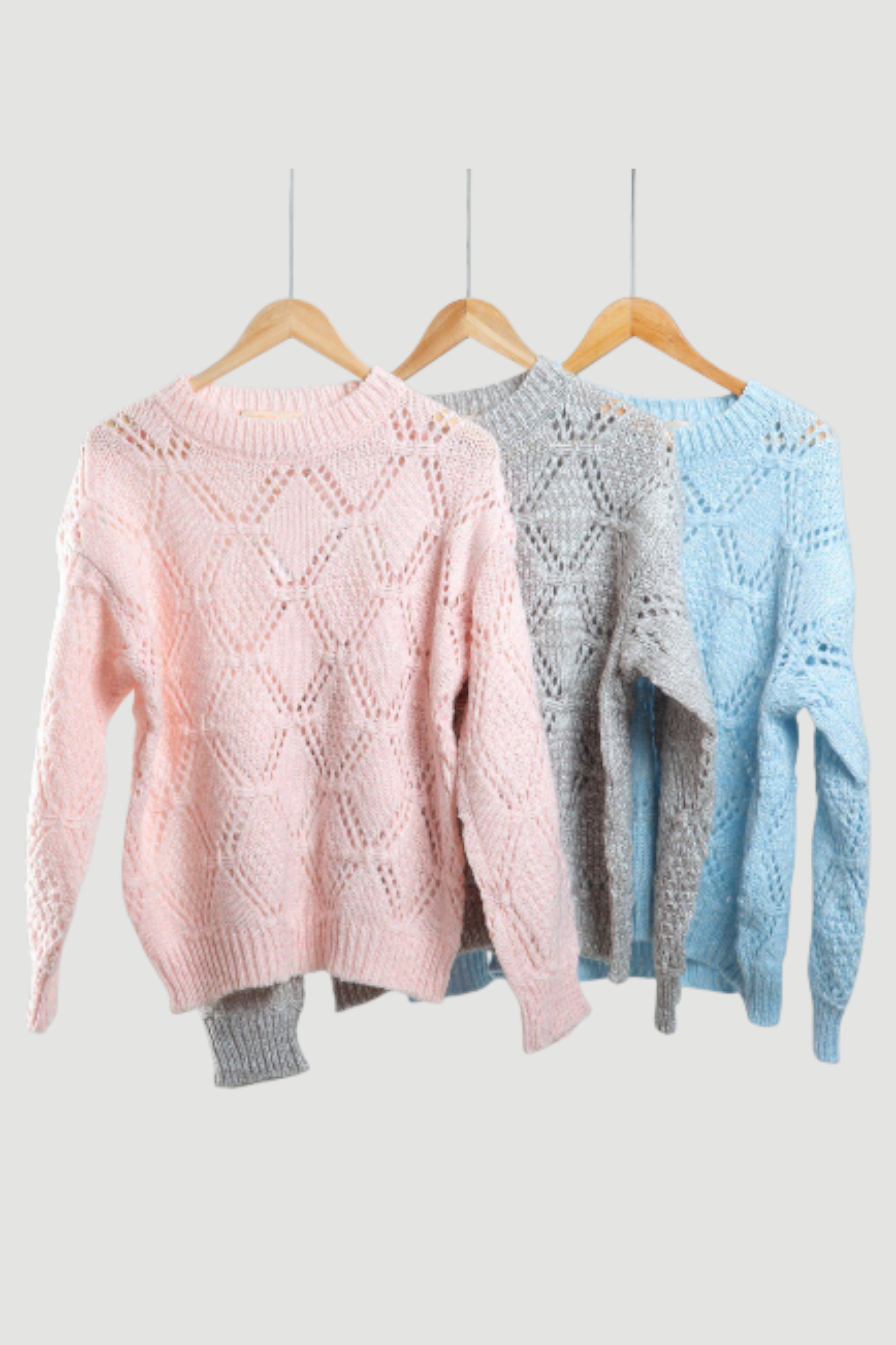 بلوز بافت زنانه در سه رنگ صورتی طوسی آبی روشن دارما کالکشن، ترکیبی از سادگی و ظرافت است. با بافت نرم و لطیف خود، حس گرما و راحتی را در روزهای سرد پاییز و زمستان به شما هدیه میدهد. طراحی ظریف و بافت سوراخدار این بلوز، آن را به انتخابی ایدهآل برای استایلهای روزمره و استریتاستایل تبدیل کرده است.