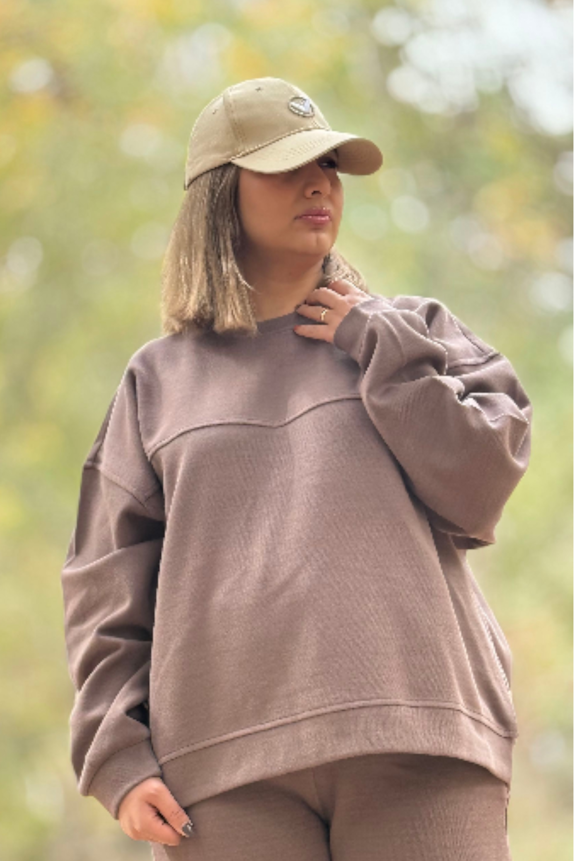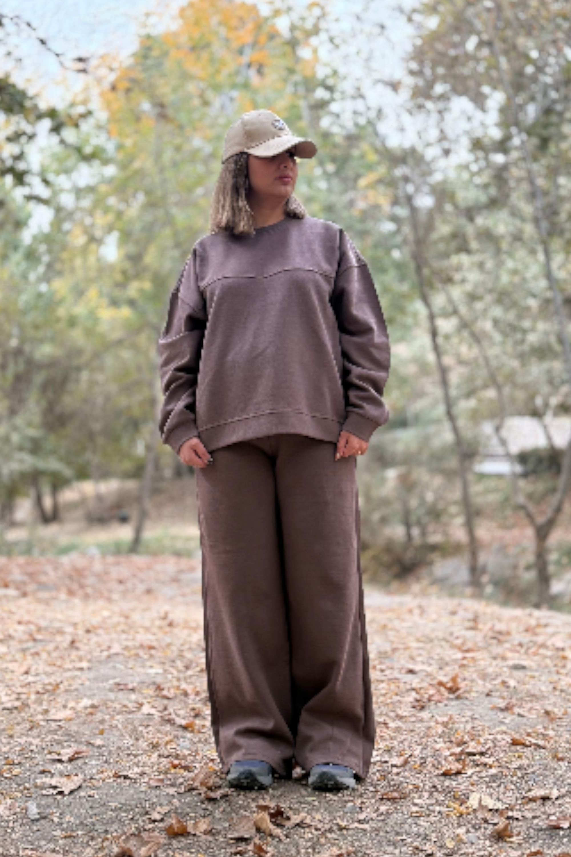 ست دورس و شلوار اورسایز با پارچهٔ نرم و گرم؛ انتخاب ایدهآل برای روزهای آرام خانه، پیادهروی یا استایل کژوالِ شیک.