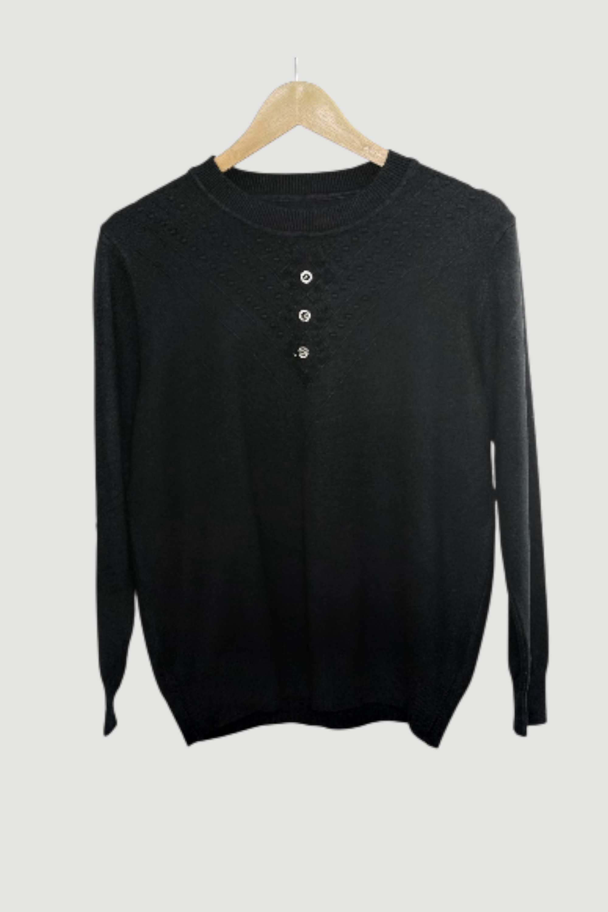 بلوز بافت سهدکمه، انتخابی شیک و گرم برای فصول خنک سال است. این مدل بافت با طراحی مینیمال و سه دکمه تزئینی روی یقه، استایلی خاص و متفاوت ایجاد میکند. جنس بافت نرم، لطیف و کشسان است و روی بدن فرم بسیار زیبایی میگیرد.