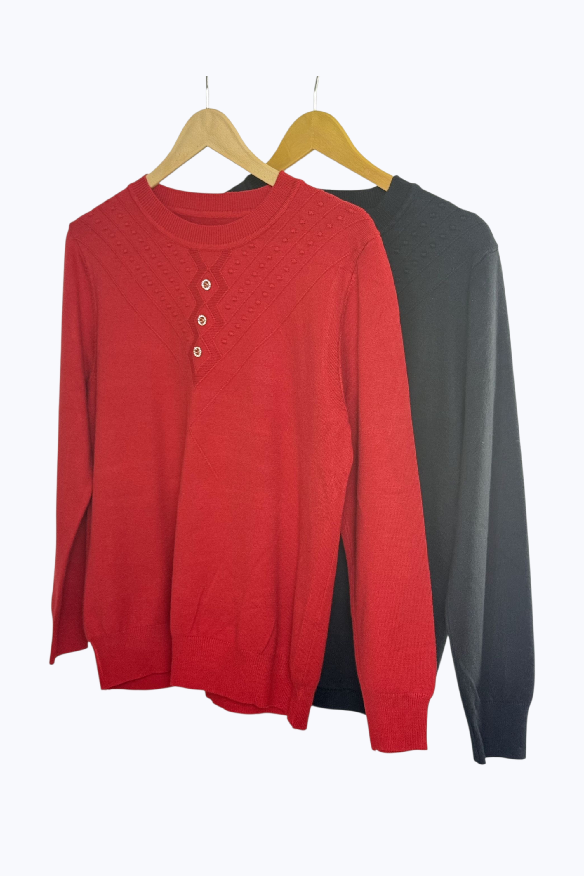 بافت گپ سه دکمه(دکوری) در ۲ رنگ مشکی و قرمز فری سایز