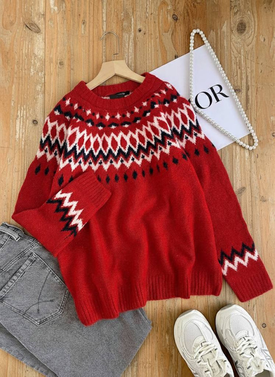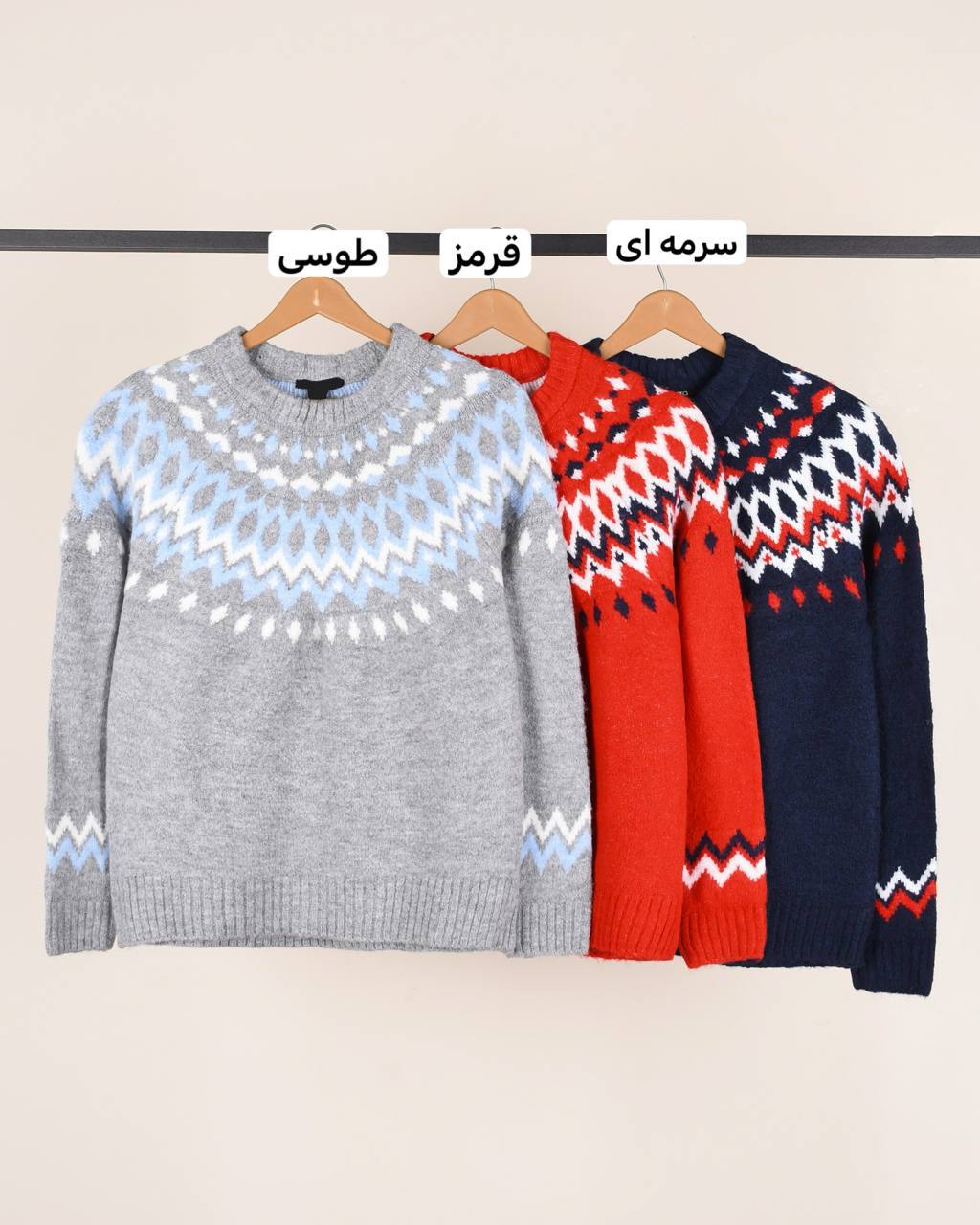 بافت کلاسیک طرح ژاکارد فری سایز در سه رنگ خاکستری،قرمز،سورمه ای