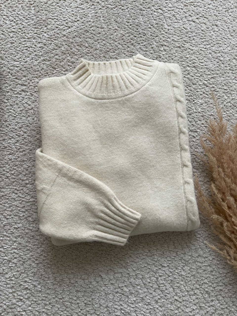 پلیور/بلوز بافت یقه گرد، آستین بلند، تنخور آزاد و راحت برای استفاده روزمره و استایلهای اسپرت یا نیمهمجلسـی.